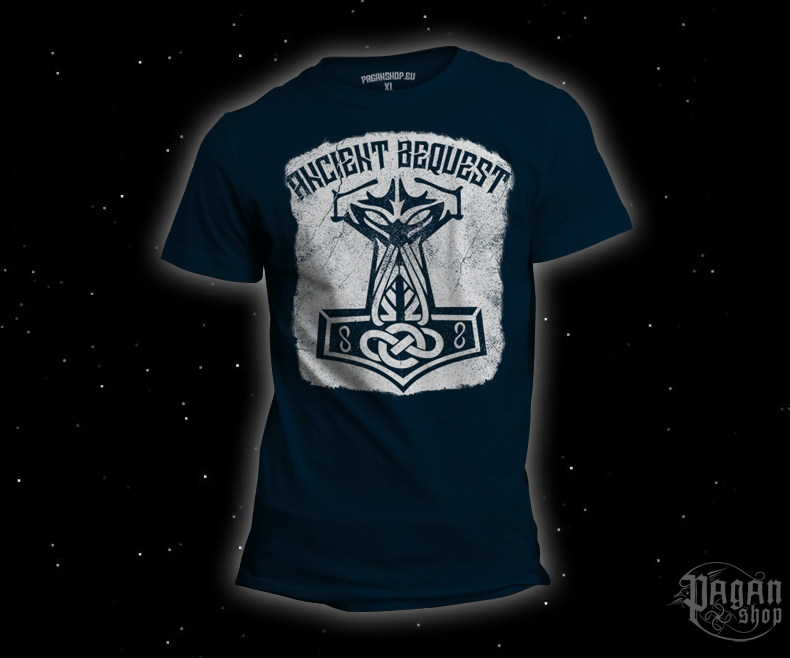 Mystický design pro moderní věk Nápis „Ancient Bequest“ (v překladu Prastaré dědictví) rámuje detailně zpracovaný Mjölnir a připomíná nám, že hodnoty jako čest, odvaha a věrnost svým kořenům jsou nadčasové. Thorovo kladivo bylo u vikingů nejoblíbenějším amuletem – nosili ho válečníci pro sílu v bitvě, ale i prostí lidé pro požehnání při sňatcích či rituálech. Tento design propojuje historickou syrovost s moderní estetikou, která vynikne jak na koncertě, tak při toulkách divočinou.