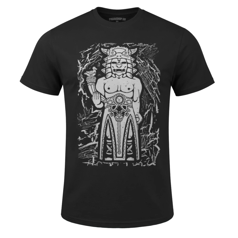 Vstupte do síně, kde pohostinnost nezná mezí, ale meč je vždy nadosah. Mezi všemi slovanskými božstvy má Radegast (Radigost) výjimečné postavení. Je to bůh, který miluje hodování a dary, ale zároveň je uctíván jako mocný válečník v přilbici s býčí hlavou. Tričko s motivem Radegasta je určeno pro ty, kteří v sobě nesou onen pověstný „slovanský charakter“ – srdečnost pro přátele a neústupnost vůči nepřátelům. Je to vizuální pocta tradici, která přežila staletí v lidových písních a na vrcholcích hor.