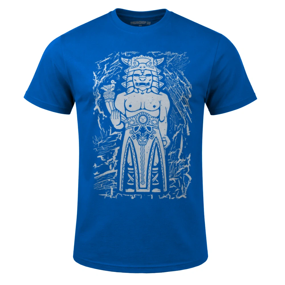 Vstupte do síně, kde pohostinnost nezná mezí, ale meč je vždy nadosah. Mezi všemi slovanskými božstvy má Radegast (Radigost) výjimečné postavení. Je to bůh, který miluje hodování a dary, ale zároveň je uctíván jako mocný válečník v přilbici s býčí hlavou. Tričko s motivem Radegasta je určeno pro ty, kteří v sobě nesou onen pověstný „slovanský charakter“ – srdečnost pro přátele a neústupnost vůči nepřátelům. Je to vizuální pocta tradici, která přežila staletí v lidových písních a na vrcholcích hor.