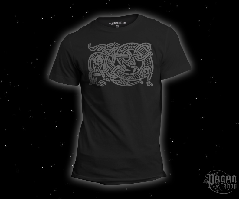 Probouzejte draka, který dříme v hlubinách historie. Draci a hadi (Fafnir či Jörmungandr) hrají v severských ságách nezastupitelnou roli. Nejsou to jen nestvůry, ale mocné bytosti představující neustálou změnu a sílu elementů. Naše triko s motivem propleteného vikingského draka čerpá inspiraci z historických nálezů a dřevořezeb, kde nekonečné linie tvoří hypnotizující vzory. Šedý potisk s jemným vintage efektem dodává triku nádech patiny, jako by design pocházel přímo z nalezeného vikingského štítu.