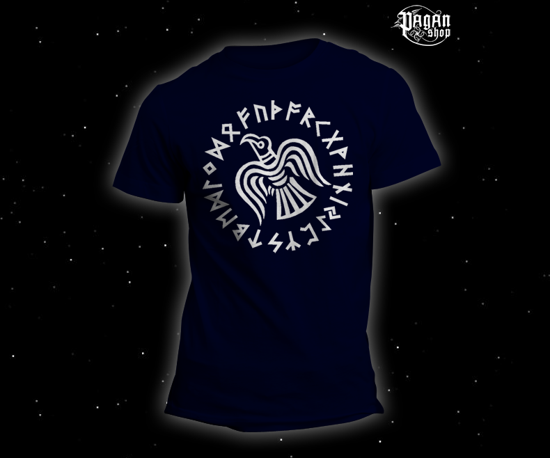 Staňte se poslem bohů! Triko s vikingským havranem v kompletním runovém kruhu 24 znaků futharku. Symbol paměti a ochrany na prémiové 100% bavlně. Ideální pro moderní vikingy, kteří hledají hloubku a styl v jednom. Váš kousek historie z PaganShop.eu! celý popis